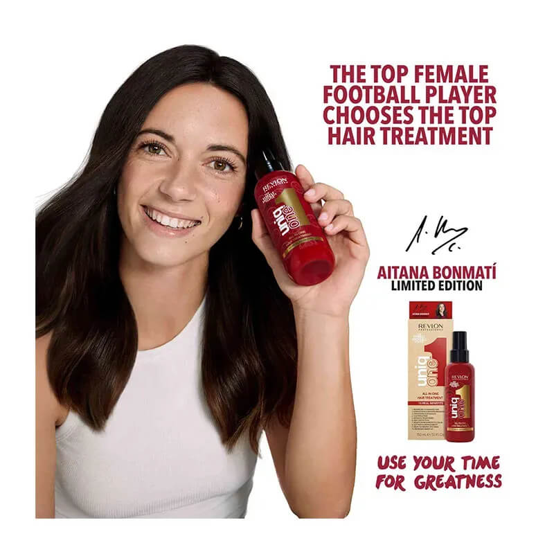 Η UniqOne ενώνεται με την καλύτερη ποδοσφαιρίστρια του κόσμου, Aitana Bonmatí, για να παρουσιάσει αυτήν την ειδική έκδοση που εμπνέει τις γυναίκες να επιτύχουν το μεγαλείο χωρίς να εγκαταλείψουν τα εντυπωσιακά μαλλιά.