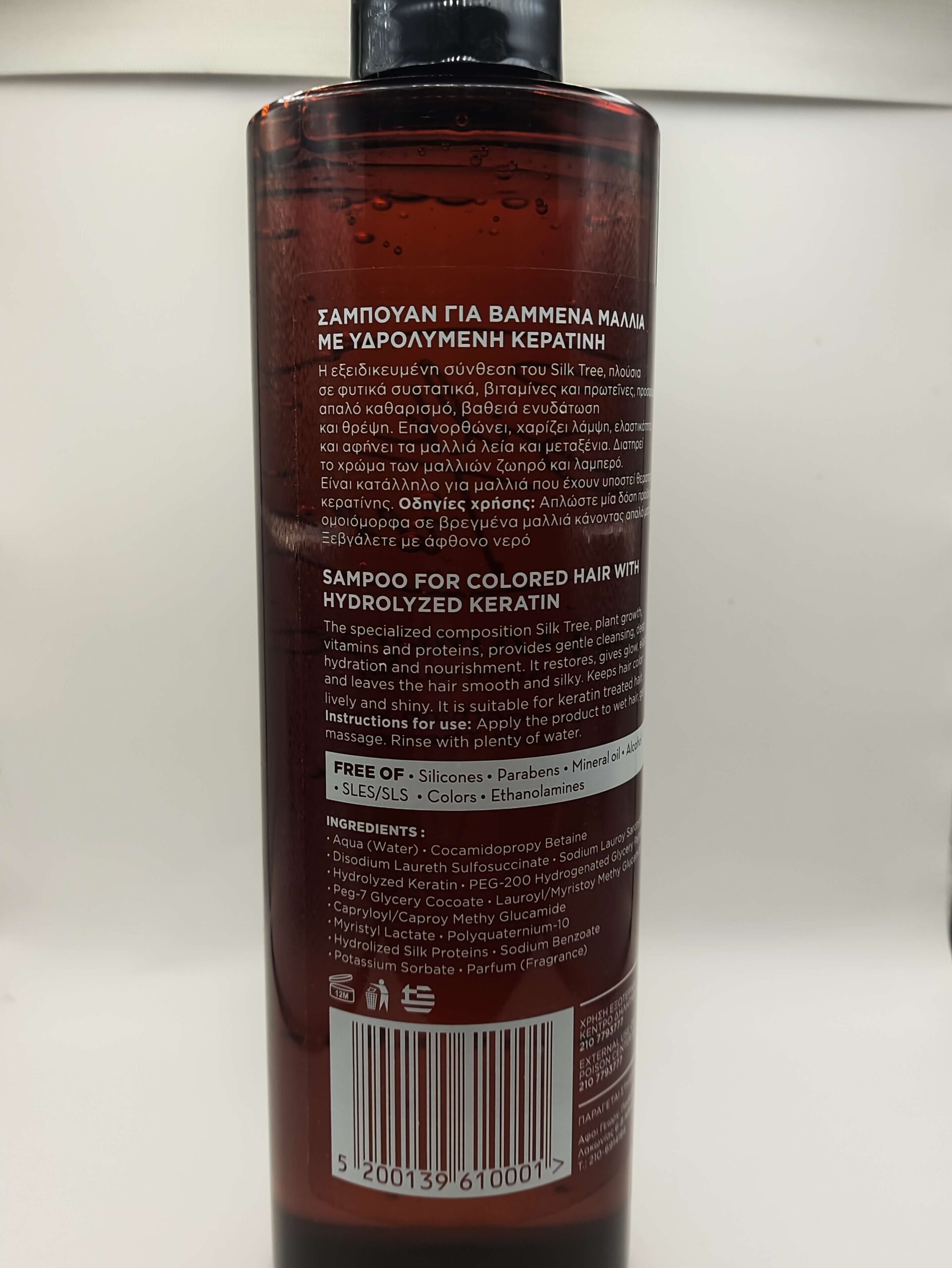Η εξειδικευμένη σύνθεση του Silk Tree, πλουσια σε φυτικά συστατικά,βιταμίνες και πρωτείνες, προσφέρει απαλό καθαρισμό, βαθειά ενυδάτωση και θρέψη. Επανορθώνει, χαρίζει λάμψη, ελαστικότητα και αφήνει τα μαλλιά λεία και μεταξένια. Διατηρεί το χρώμα των μαλλιών ζωηρό και λαμπερό. Είναι κατάλληλο για μαλλιά που έχει εφαρμοστεί θεραπεία κερατίνης.